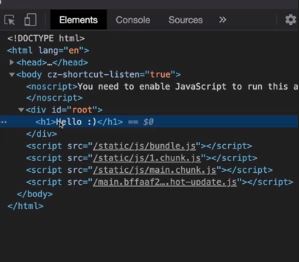 그 hello가 연결되어서 이 hello가 결국 div태그에 들어가는 것을 확인해 볼 수 있다.