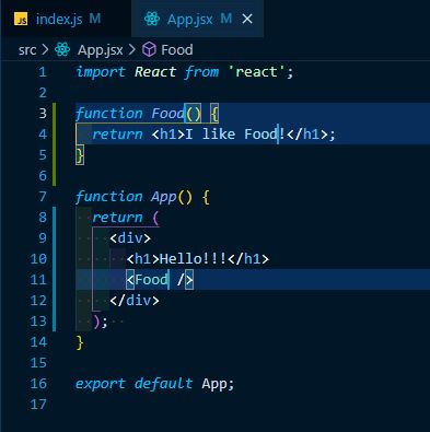 아무튼 저게 component를 사용하는 방법임. 어떻게 component를 만들 수 있을까? 우리만의 component를 만드는 것은 매우 간단함.